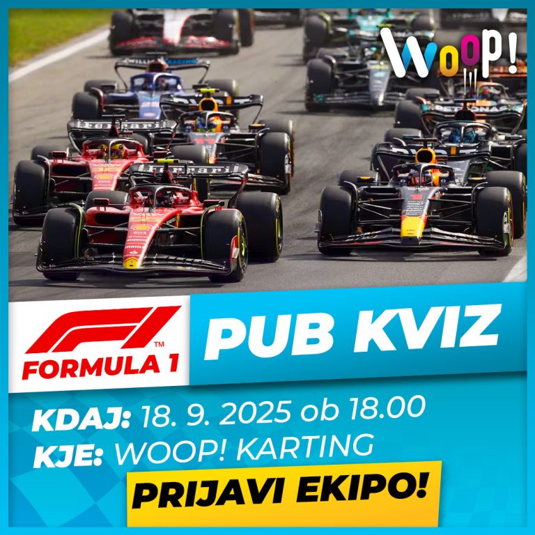 19.9.2025 ob 18:00 se bo v WOOP! Kartingu odvil priljubljeni Pub kviz, tokrat na dirkaško temo. Vprašanja bodo zajemala dosežke dirkaških legend, največja rivalstva, ikonična dirkališča, kontroverzne ekipne ukaze, epska prehitevanja in tudi dirke, ki se nikoli niso zgodile. Najboljšim ekipam pa se obetajo super nagrade!
